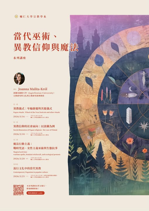 【講座】輔仁大學宗教學系「當代巫術、異教信仰與魔法」系列講座 講者|Joanna Malita-Król 波蘭亞捷隆大學 (Jagiellonian University)宗教研究所文化與宗教研究助理教授 輔仁大學宗教學系「當代巫術、異教信仰與魔法」系列講座 本系列講座以英文進行,歡迎踴躍報名參加! More info 專題演講